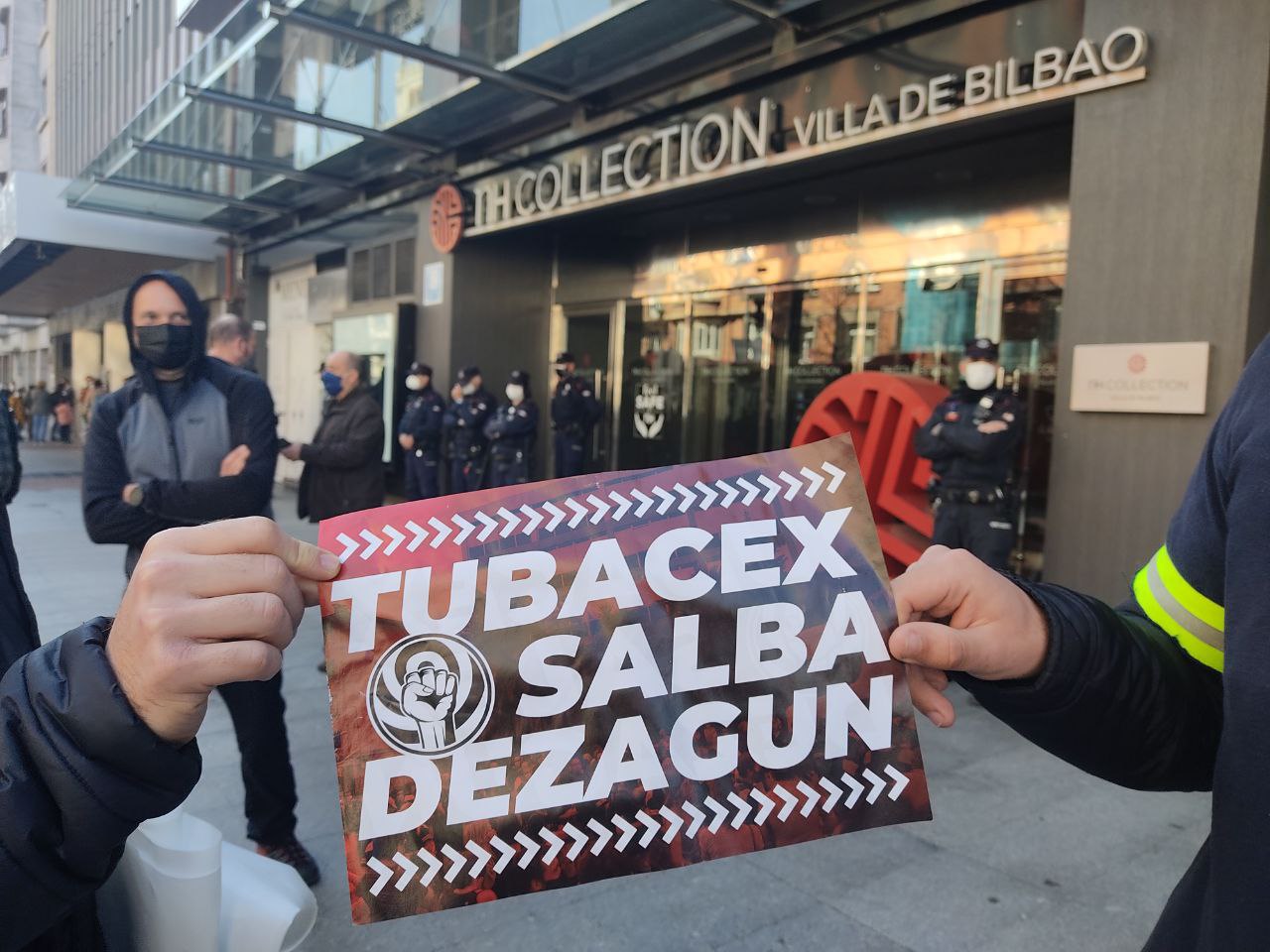 Sindikatuek eta Aiaraldeko Greba Batzordeak 11:30etik aurrera Bilboko Jesusen Bihotzean mobilizatzeko deia egin diete herritarrei. Ertzaintzak enpresa batzordeko zenbait kide miatu ditu bileran sartzen ari zirenean, eta, bitartean, hainbat pertsona protesta egiten geratu dira eraikinaren kanpoaldean.