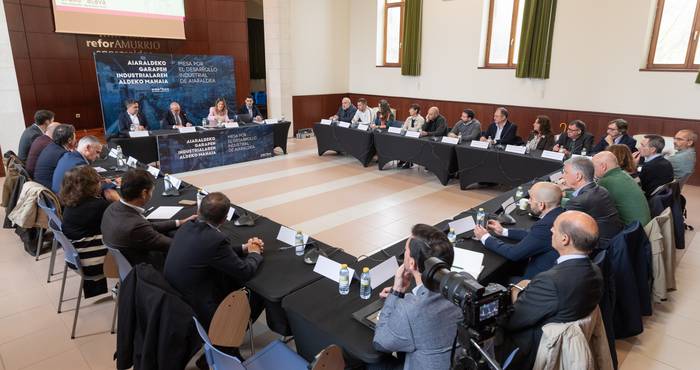 Aiaraldeko industria garatzeko mahaiaren lehen bilkura egin dute gaur Amurrion, Aldundiak deituta, instituzio, enpresa eta gizarteko hogeita hamar eragile ingururekin. Helburu nagusia eskualdearen etorkizun industrialaren aldeko itun handi baterako oinarriak ezartzea eta diagnostiko partekatu bat adostea izan da. Diputatu nagusiak aitortu du eskualdea Valvospain, Guardian eta Tubos Reunidos bezalako enpresetan izandako erregulazio espedienteen ondorioz "une konplexua" igarotzen ari dela, eta lehiakortasuna bultzatzeko estrategia definitzeko elkarlanean aritzeko deia egin du. "Ziur nago irtenbide gehienak batasunetik etorriko direla. Eta uste dut, halaber, elkarrekin eta norabide berean lan egiteko borondatea badagoela".