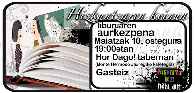 Ostegunean liburuan parte hartu duten 6 idazlek eta 6 ilustratzailek zuzenean bere lana azalduko dute Gasteizko Alde Zaharreko HOR DAGO! tabernan. Aurkezpenean ilustrazioak proiektatuko dira, Jon Basaguren bakarlariak zuzeneko musika jarriko du, pikoteoa... Plan ederra, ezta?? Gainera, bertaratzen direnei liburua oparituko zaie!!!