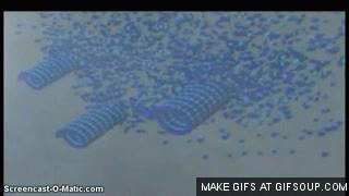 Hemen azpian ikus dezakezue kinesina (KIF; mikrotubuluen gainean aurreranzko garraioaz arduratzen den motore-proteina) bat, besikula bat soinean garraiatzen mikrotubulu batean zehar, "oinez ibiliko" balitz bezala. Pauso bakoitzak energia kimikoa (GTP; guanosin trifosfato) suposatzen du.
