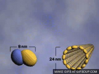Baina mikrotubuluetara buelta gaitezen. Izan ere tubulina dimeroen polimerizazioa gertatzeko energia kimikoa behar da. GTP gastatzen da. GTP molekula tubulina dimeroari lotzen zaio hauen gune-aktiboan eta orduan polimerizatu daitezke pixkanaka-pixkanaka mikrotubuluak luzatuz. Beheko GIF animatu honetan ikus dezakegun bezalaxe.