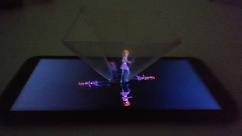 Holograma, mugikorretik edo tabletetik igortzen diren argi-hizpiek piramidearen lau planoetan (aurpegietan) sortzen diren irudien isladen interferentziek sortzen duten fenomeno bisuala da. Horrela, hologramak ikusteko bideoetan agertzen diren lau irudiak piramidearen erdian proiektatzen dira, hiru dimentsiotako irudi bakarra sortuz.