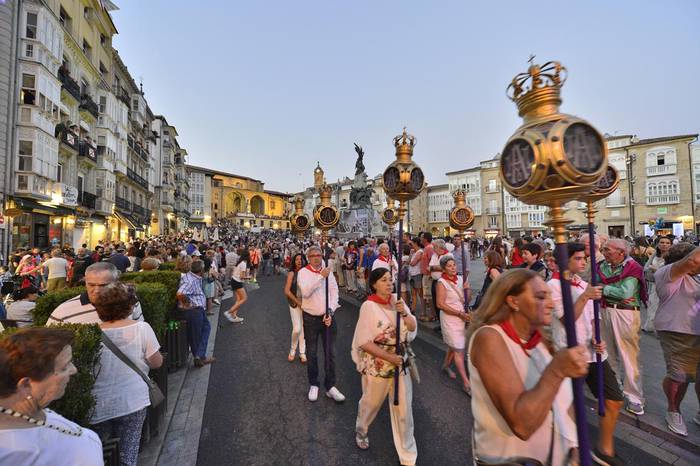 Historiako momenturik latzenetan ere ez du etenik izan Gasteizko farolen prozesioak, eta urtez urte milaka lagun elkartu ditu hiriburuko jaietako usadio zaharrak. 125 urte bete dituenean, ordea, geldialdia egin beharko du. Andre Maria Zuriaren omenez izen bereko kofradiak antolatzen dituen ekitaldi jendetsuak bertan behera geratu dira aurten. "Urte zaila izan da. Ilusio handia genuen 125 urteak ospatzeko, egitarau betea genuen prest, eta dena bertan behera utzi behar izan dugu; halere, egoerari aurre egin behar zaio eta onena atera", azaldu du Ricardo Saez de Heredia kofradiako kideak.