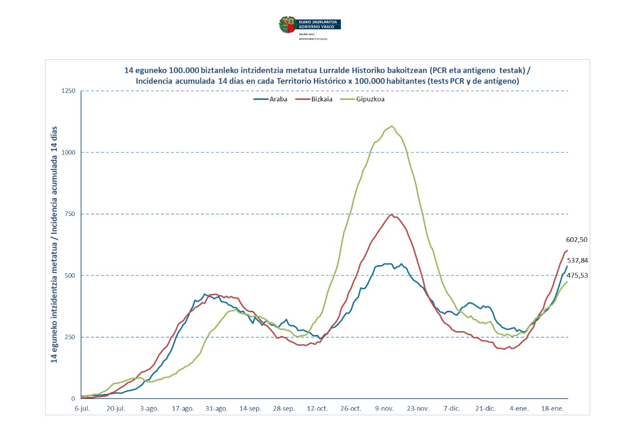 Araba osoa eremu gorrian sartu da asteburu honetan, 537,84ko intzidentzia tasa metatuarekin. Azken 24 orduetan, 151 positibo berri atzeman dira lurraldean, eta pandemiaren bilakaerak okertzen jarraitzen du.