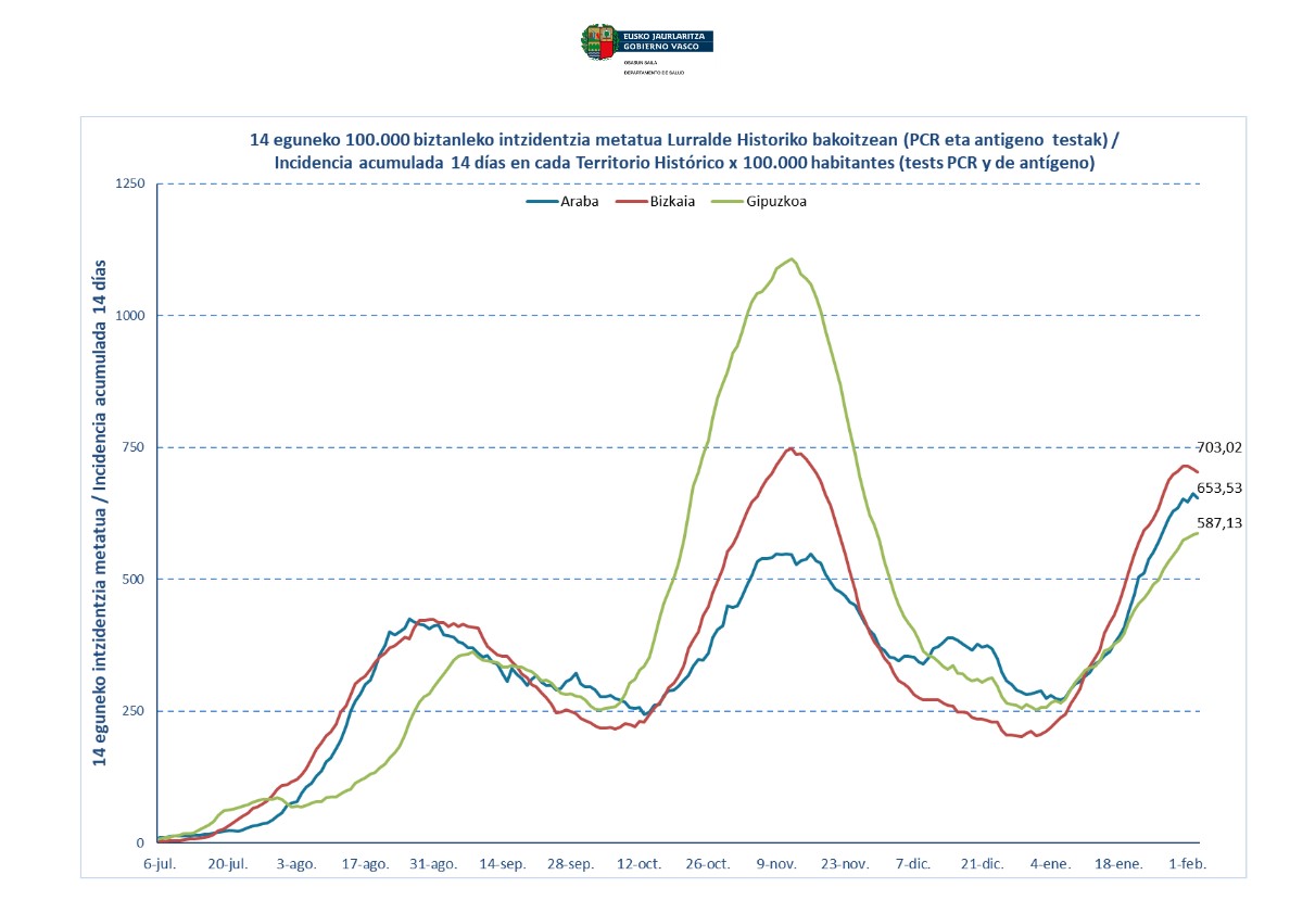 Azken 24 orduetan 144 positibo berri atzeman dira Araban, eta intzidentzia tasa metatua 653koa da une honetan. Azken eguneko joera mantenduz, lurraldeko intzidentzia egonkortzen hasi da; horrela, pandemiaren hirugarren olatuaren balizko amaierara iristen ari garela ondorioztatu daiteke.