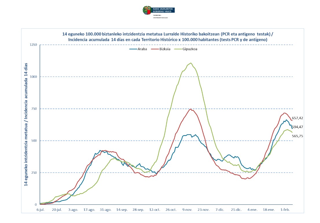 Bitartean, 5.000 biztanletik beherako udalerriei dagokienez, intzidentzia tasa metatua soilik hiru udalerritan da 500etik gorakoa; hortaz, lurraldeko egoera orokorrak hobetzen jarraitzen du: