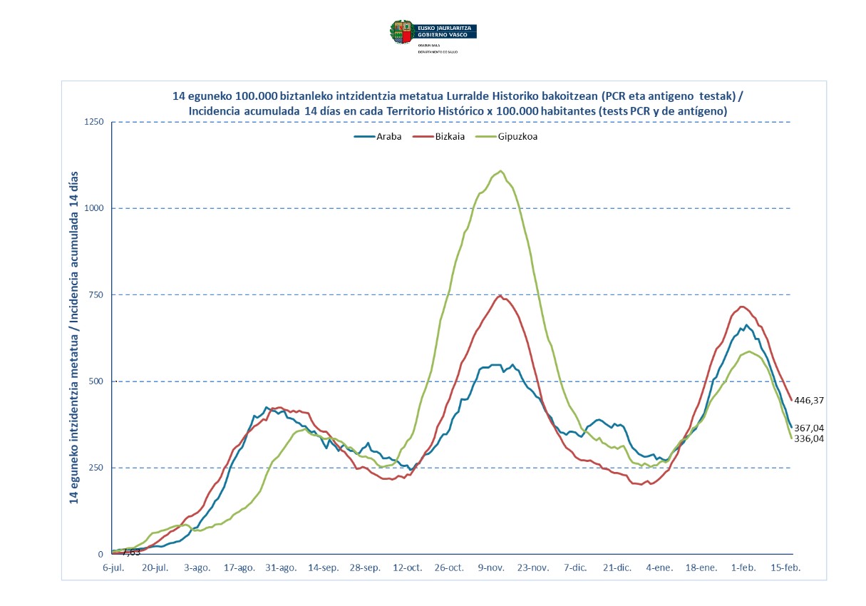 Bitartean, 5.000 biztanletik beherako udalerriei dagokienez, bederatzi udalerritan 500etik gorakoa da intzidentzia tasa metatua, baina lurraldeko egoera orokorrak hobetzen jarraitzen du: