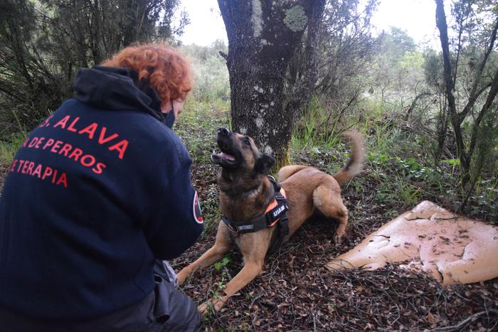 Nagore Ortiz eta Yina Romo dira gaurkoz Arabako Erreskaterako Txakurren taldeko kiderik zintzoenak. Astero biltzen dira, Yako malinois arrazako txakurrarekin entrenatzeko. Gida lanak egiten ditu Ortizek eta figurantearen papera Romok. Zaunkak entzuten direnean txakurrak lana ondo egin duela esan nahi du.
