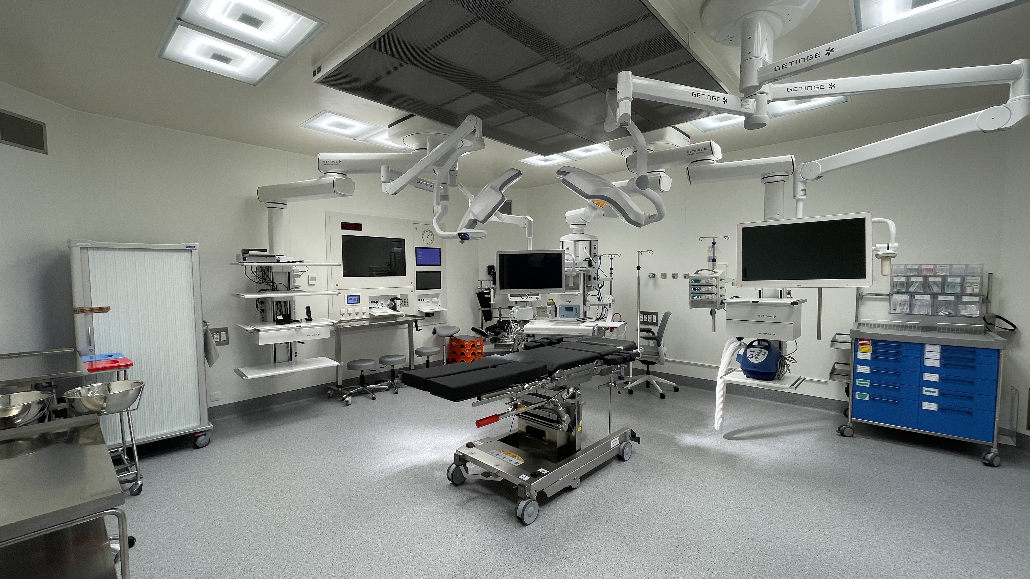 Ebakuntza-gela berriek 42 m2-ko azalera dute, eta honako ezaugarri hauek dituzte: mahai kirurgikoak, eraginkortasun handieneko LED argiztapena, sabaian ainguratutako gailu mugikorrak gurpilen gaineko ekipoak gutxitzeko, kableatuak eta konexio integratuak, bereizmen handiko monitoreak orotariko irudietarako (erradiografiak, erresonantziak, angiografiak, etab.) eta arnasgailuak, besteak beste.