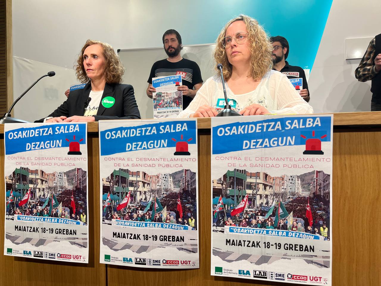 Mahai sektoriala "erabat blokeatuta" dagoela eta langileek "tratu txar sistemikoa" pairatzen dutela salatzeko, bi greba egun deitu dituzte Osakidetzako SATSE, ELA, LAB, SME, CCOO eta UGT sindikatuek maiatzaren 18 eta 19rako, udal eta foru hauteskundeen aurreko astean: "Osakidetza salba dezagun. Osasun publikoa desegitearen aurka" izango da lanuzte eta mobilizazioen lelo nagusia.