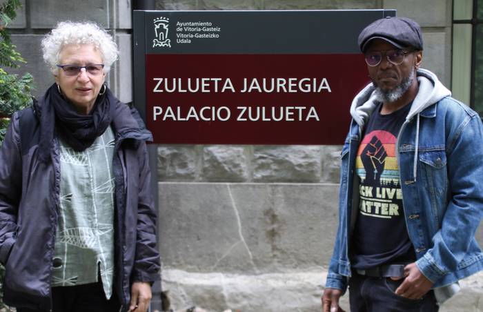 Zulueta jauregiko lorategi ederrean egin dute hitzordua Gladys Giraldok (Bogota, Kolonbia, 1958) eta Toni Cunhak (Benguela, Angola, 1972) ALEArekin. Beste bisitari batzuk ere ari dira arkitektura eta inguruaz disfrutatzen. Ordea, zenbatek galdetu diote euren buruari jauregi honen atzean zer gordetzen den? Eta Arte Ederren Museoa hartzen duen Augustin Zulueta jauregian? Zenbatek arakatu dute ondare horien jatorrian? Julian Zulueta (Anuntzeta,1814-Habana, 1878) markes eta esklabistak urteetan kateatutako altxor zenbaezinen katebegi txiki bat baino ez dira, eta, aldi berean, kolonialismoak Gasteizen duen erakusleiho handiena. Ondotxo ezagutzen dute Giraldok eta Cunhak, eta oraindik askorentzat "ikusezina" den gaia bistaratzeko lanean hasi dira. "Zor historiko bat dago, eta hori azaleratzen saiatuko gara".