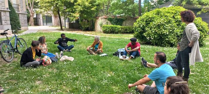 Contrapuntok egin nahi duen zabalpen lan horren lehendabiziko saioa joan den maiatzaren 6an egin zuten. Kolonialismoak Gasteizen utzitako arrastoak ezagutzeko, bisitaldi gidatu bat antolatu zuten, lagun artean; aurrerago, hori egokitu eta modu ofizialean egiteko aukera aztertzen ari dira. "Esklabisten ondarea bertatik bertara ikusten duzunean, gertutik senti dezakezu, ez da historia pasarte soil bat; erdiguneko kale garrantzitsuenetan daude garai latz horren oihartzunak", azaldu du Cunhak. Santa Isabel hilerritik hasita, Manuel Iradierren estatuara eta Zulueta jauregira ere gerturatu ziren. "Mingarria ere izan zen zenbait momentutan. Bakoitzak atzean dugun motxilarekin, ezin gaitezke aldendu kontatzen ari garen historia honetaz; baina, are mingarriagoa da ikustea seme-alabek zure arbasoek bizi izan zutena bizi behar dutela orain; lan egiten jarraitu behar dugu".