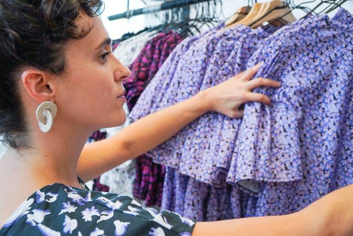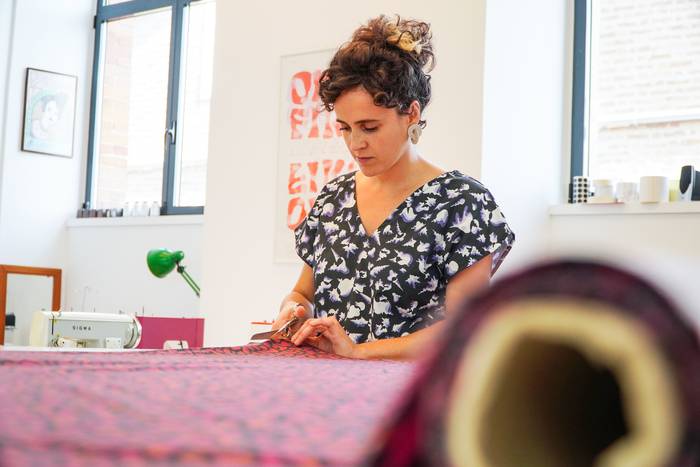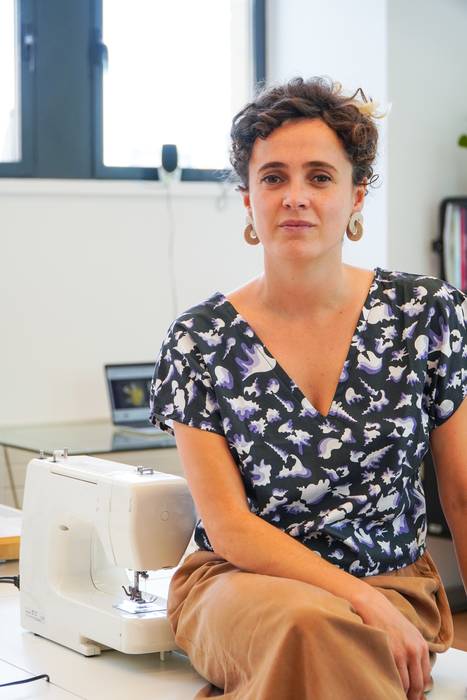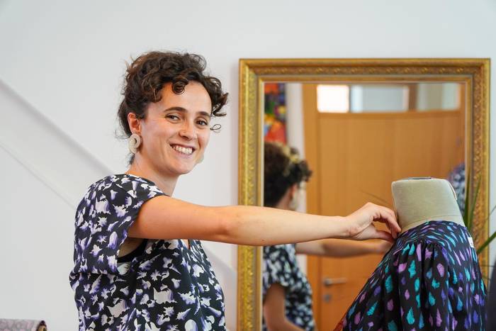 Pandemian landu zuen lehenengo kolekzioa Maddalen Agirre gasteiztarrak, Madd Moda zigilupean, birziklatutako oihalki vintagekin osatuta. Geroztik, estanpatuek gidatu dute bere sorkuntza, kolore kontrasteak nagusi diren alkandora eta kamisetak tartean, betiere gertuko moda jasangarriaren aldeko apustua eginez. Eta, dagoeneko, seigarren bilduma du kalean; greziar mitologiako Medusa gorgona oinarri hartuta, itsas hondoko izaki eta paisaietan inspiratutako jantziak aurkeztu ditu, Maria Garcia de Bikuña laguntzailearekin elkarlanean. Diseinu lanak, batetik, eta joskintza eta patroigintza tailerrak, bestetik, agendak utzi dion tarte txikian hitz egin du ALEArekin, Gasteizko Alde Zaharreko enpresa zentroan duen tailerrean.