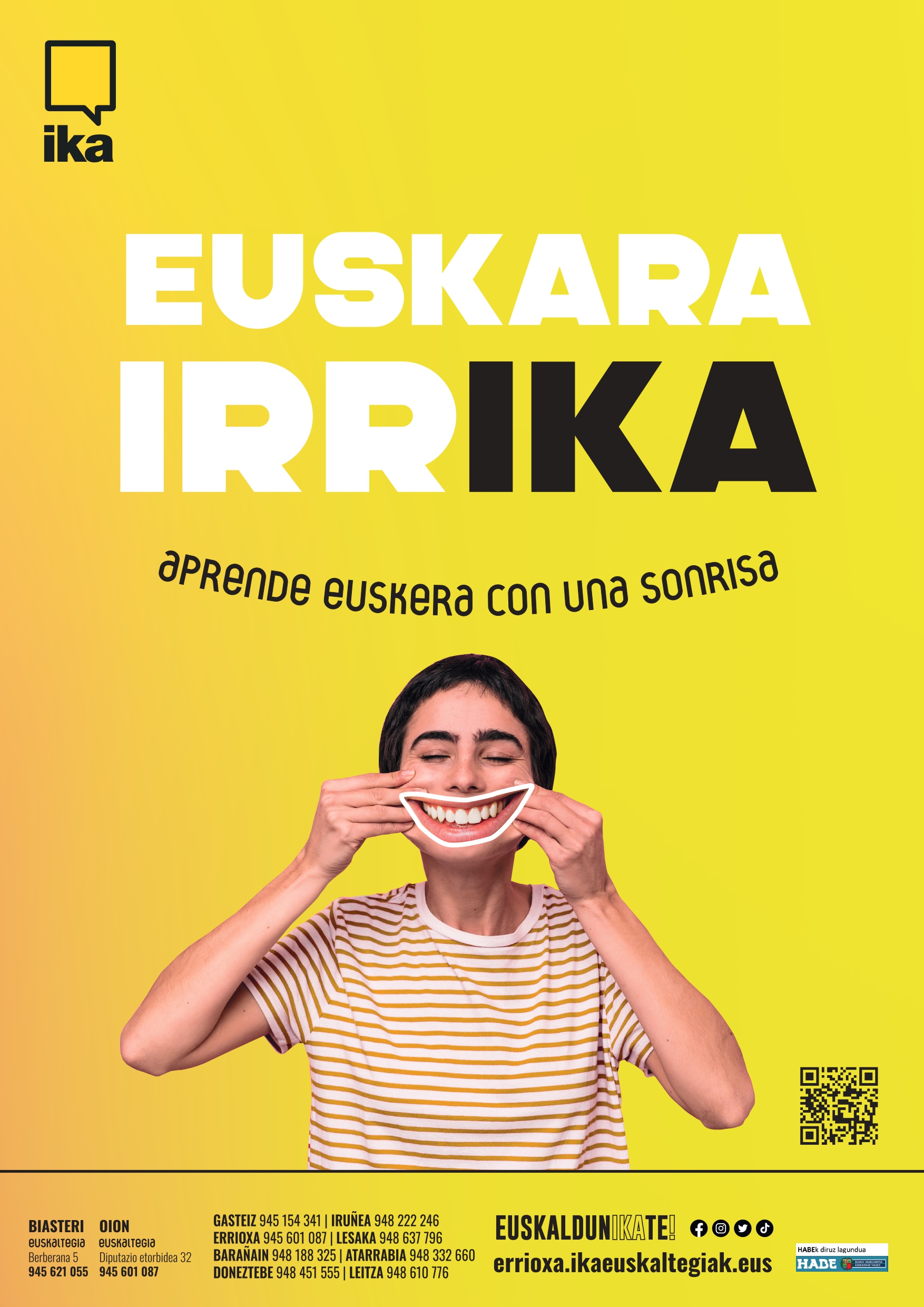 Abian da ikasturte honetan Arabako Errioxako IKA euskaltegian, Oionen, helduak euskara ikastera animatzeko kanpaina, Euskara irrIKA: aprende euskera con una sonrisa lelopean.