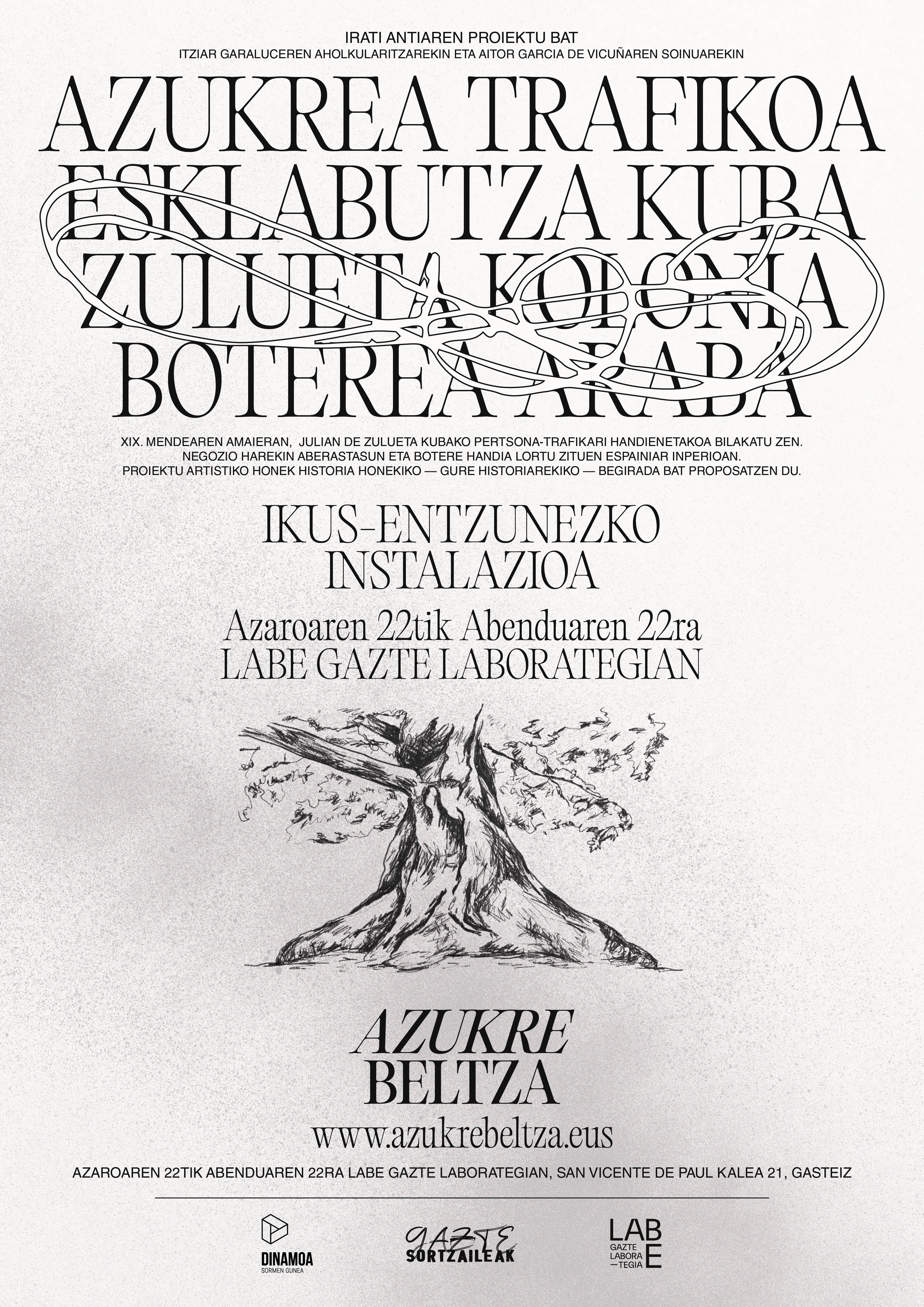 Julian de Zulueta y Amondo XIX. mendeko esklabista arabarraren historia "gertutik ezagutzeko asmoarekin", Irati Antiak hainbat lagunekin kolaboratu du Azukre Beltza izeneko erakusketa prestatzeko. Ekimenak bi zutabe ditu. Batetik, azukrebeltza.eus webgunea osatu dute. Bestetik, azaroaren 22tik abenduaren 22ra Gasteizko LABE espazioan zabalik egongo den ikus-entzunezko instalazioa egingo dute. Bertan, "esperientzia murgiltzaile" bat proposatuko dute.