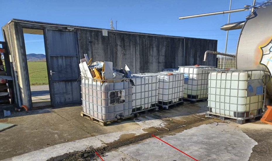 Diputatuak azaldu duenez, salaketa jaso eta bost egunera, URAren ikuskatzaileek isurketaren balizko jatorria aurkitu zuten, Aldanondo enpresaren fabrikako instalazio abandonatuetan. Bertan, bederatzi bidoi aurkitu zituzten, industrialdeko euri-uren sarearekin lotuta dagoen euri-uren hustubide baten gainean. Bidoi batzuk beteta zeuden, eta beste batzuk hutsik. Horietako baten etiketan "sodio hidroxidoa" irakur zitekeen. Lurraren gaineko hondakinek kristalizatutako substantzia zuri bat zuten, eta euri-uren kanaletan atxikitako urak ere PH-a oso altua zuen. Beraz, zehaztu gabeko soda kopuru bat euri-uren sarera iritsi zela ondorioztatu da.