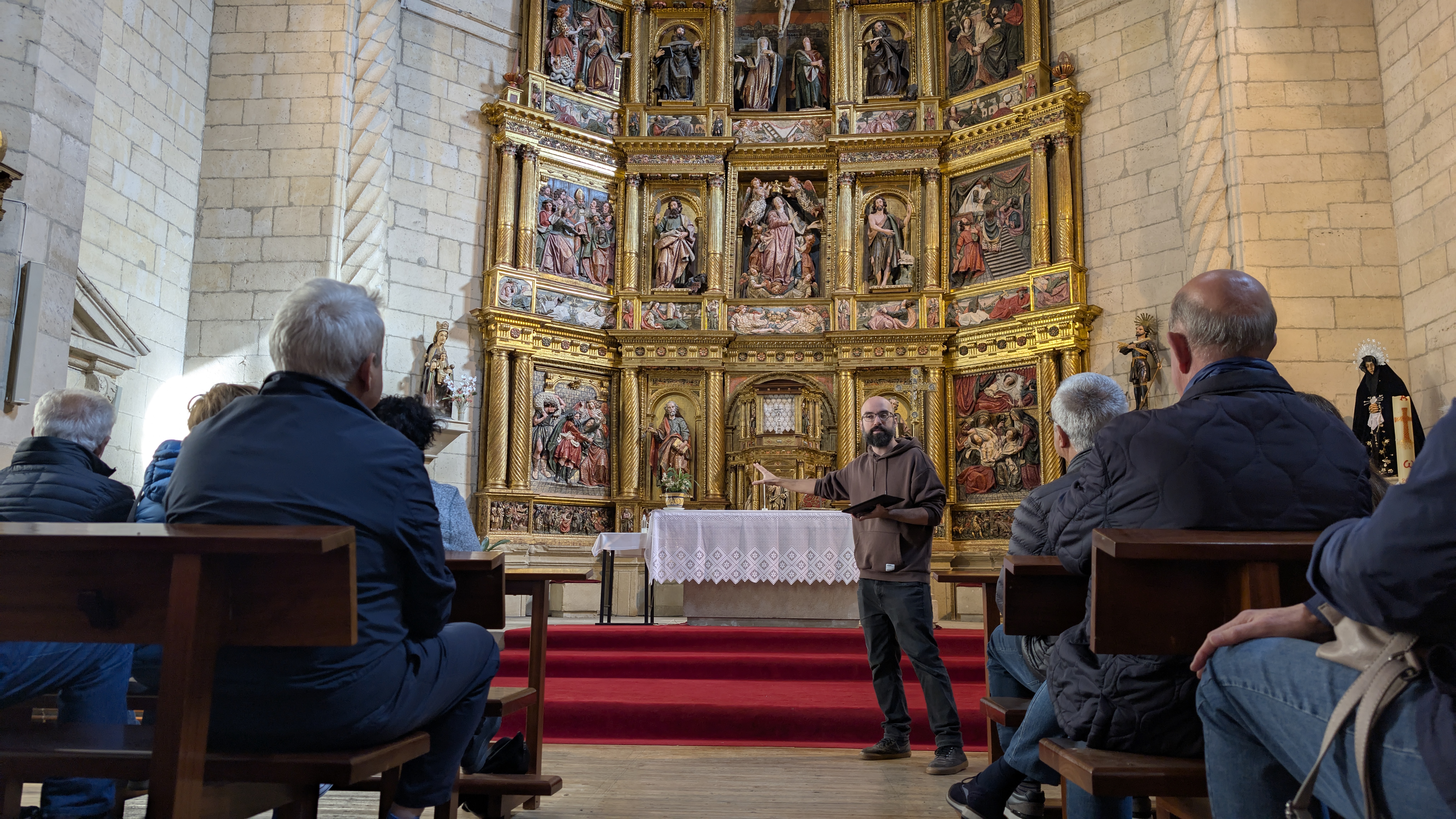 Kanpotik ederra izan arren, barruan dago arte deigarriena, duela urte gutxi zaharberritu duten erretaula garrantzitsuarekin. "Hau jada Errenazimentu betean egin zuten, eta Barrokoaren zenbait ezaugarri ditu", azaldu du adituak. Gehiena Juan de Bascardo eta Diego Jimenez eskultoreen lana da, 1650 urtearen bueltan.