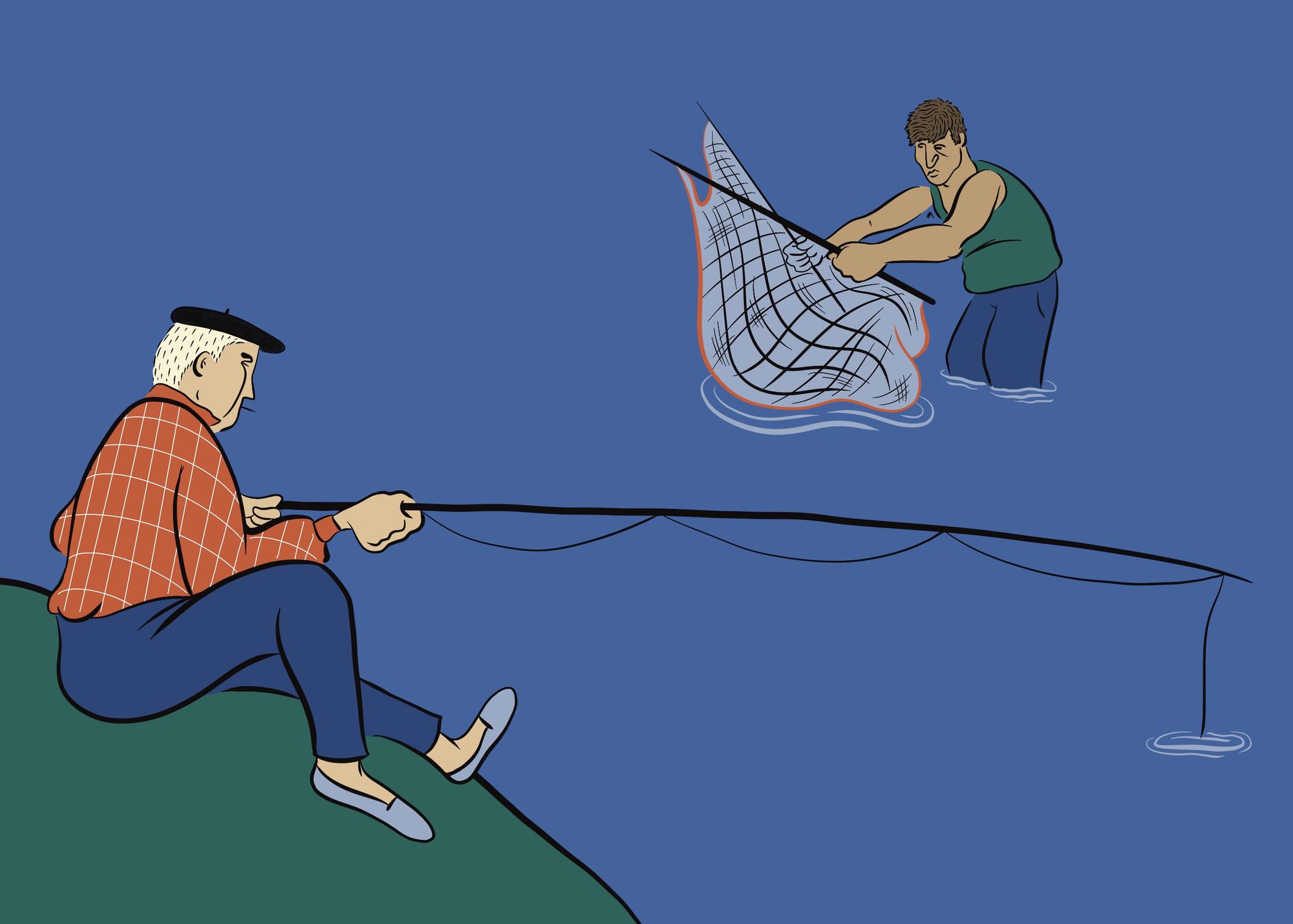 Txalupaz lagunduta, sare mota ezberdinak kokatuz, edo kanaberaz ere arrantzatzen zuten, harian zizare edo barraskiloren bat jarrita. Eta baita zuzenean eskuarekin ere, abilenek. Igelak baleztarekin ere ehizatu ohi zirela diote garaiko arrantzaleek. Sare mota batzuk debekatuta zeuden, tresmaila esaterako, baina nahikoa bihozberak izaten omen ziren begiraleak, ez zieten maiz jartzen zigorrik. Langraizeko bizilagun batek kontatzen du nola San Isidroko jaiaren bueltan, meza ostean, haurrak errotara joaten ziren, mermejuelak eta karramarroak harrapatzera. Txikienak sartu, eta nagusiak kanpoan gelditzen ziren, Guardia Zibila agertuko ote zen begira.