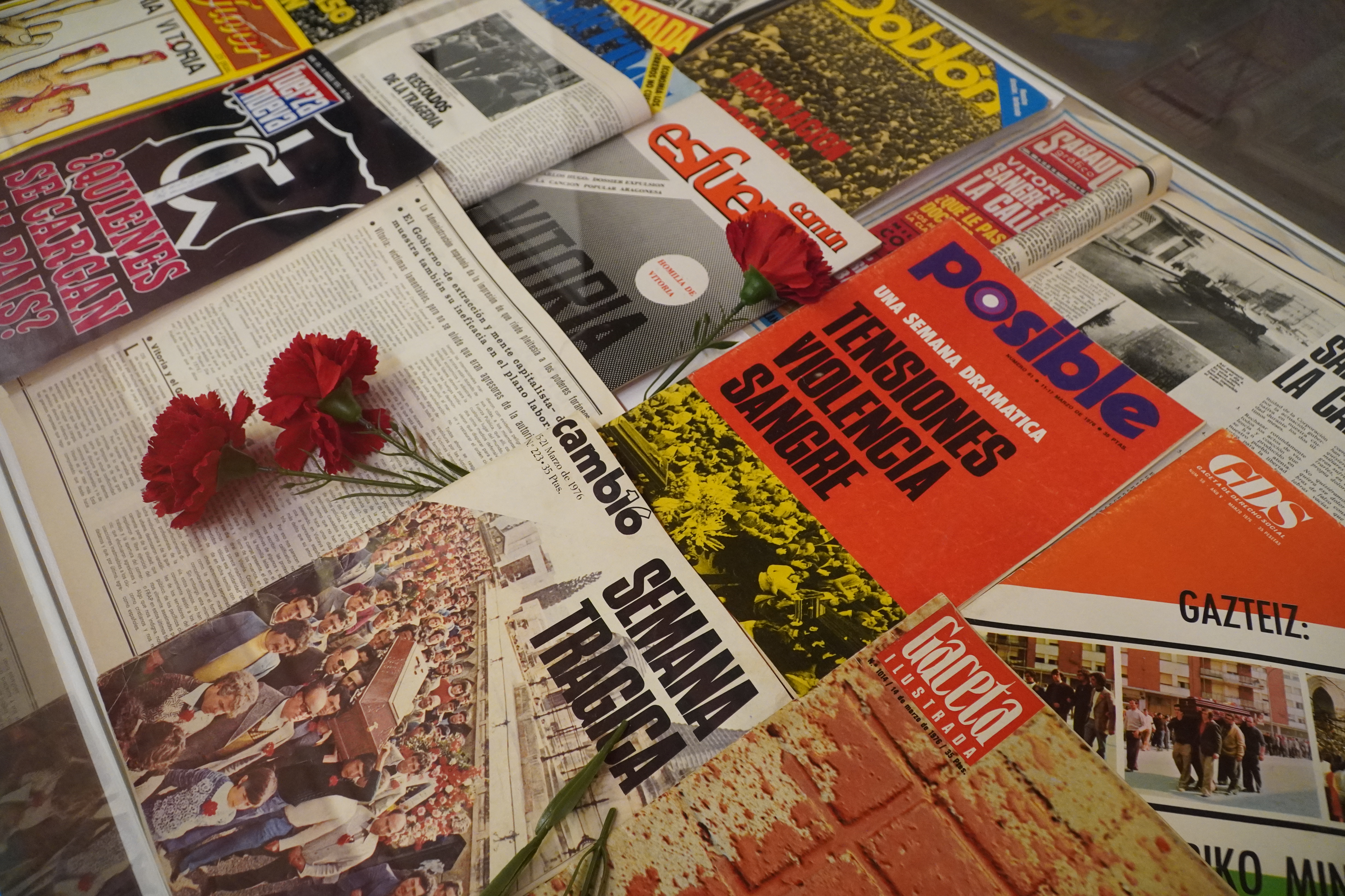 Erakusketaren ardatza garai hartako kazeta garrantzitsuenen 25 azalek osatzen dute, lau multzotan banatuta: Euskal Herriko prentsa, Espainiako estatukoa, boteretik at zeuden argitalpenak eta nazioarteko oihartzuna. Bilduma honek agerian uzten du nola kontatu zen Gasteizen gertatutakoa munduan zehar. Gainera, Luis Ziarrusta argazkilari gasteiztarraren irudi esanguratsuek eta berariaz editatutako ikus-entzunezko labur batek osatzen dute bilduma.