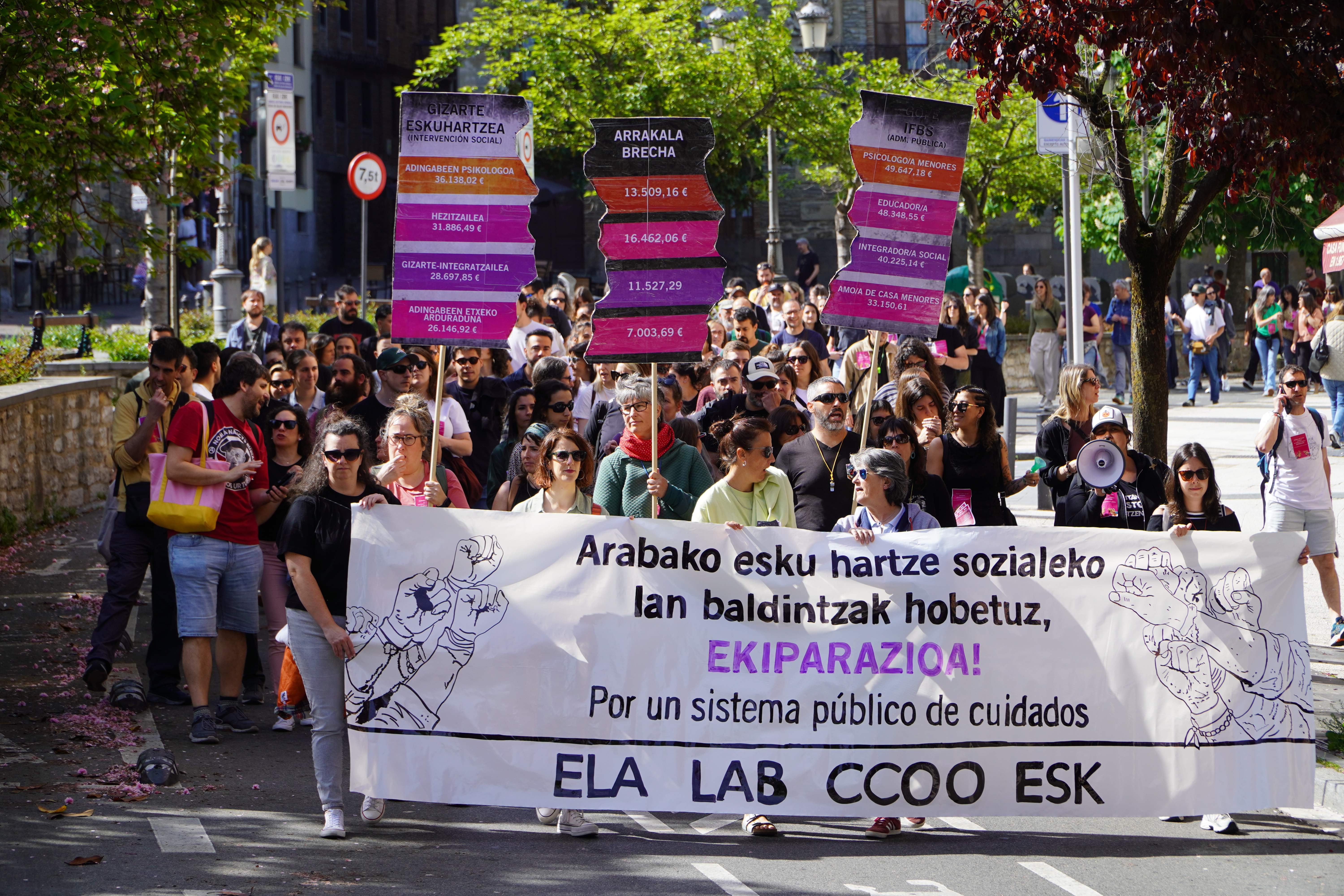 Goizean Probintzia plazan informazio gunea jarri dute, eta 10:00etan "zaratada" egin dute Arabako Foru Aldundiaren atzealdean, barruan bildutako arduradunek langileen aldarrikapenak entzuteko. Ondoren, ehunka langile manifestazioan abiatu dira Probintzia plazatik, Gasteizko Alde Zaharreko eta erdiguneko kaleak zeharkatuz, eta eserialdia egin dute Gizarte Ongizaterako Foru Erakundearen aurrean, San Prudentzio kalean.
