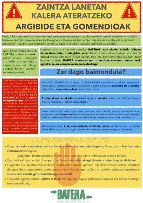 Herritar talde honen ustez, zerbitzu publikoek ezin izango dute zaintza lan guztiari aurre egin: "Eskolara joan ezinik arreta behar duten haurrak, osasun egoeragatik erosketak egitera ere atera ezin direnak edo bakarrik eta inolako laguntzarik gabe gelditu diren pertsona nagusi asko daude", azaldu dute Batera sareko kideek.