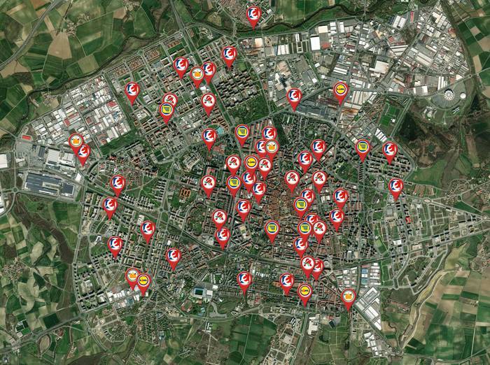 Bistakoa da, beraz, gertuko erosketaren alde saltoki handiek darabilten estrategiarekin batera, azken urteetan, zenbait katek hiriaren kanpoaldeko toki estrategikoetan kokatzearen aldeko apustua egin dutela, batez ere hazkundean dauden auzoen alboan ezartzeko asmoarekin. Mercadonak, adibidez, horrelako tokiak bilatu ditu nagusiki. Aldik ere, orain arte, estrategia horri eutsi dio, eta gainera, berezitasun bezala, saltoki nagusien alboan kokatzen ditu bere dendak. Lidl-ek ere lau supermerkatuetatik hiru hiriaren kanpoaldean ditu, eta halaber, Uvescok Elorriagako atean supermerkatu berria zabaltzeak joera horri erantzuten dio.