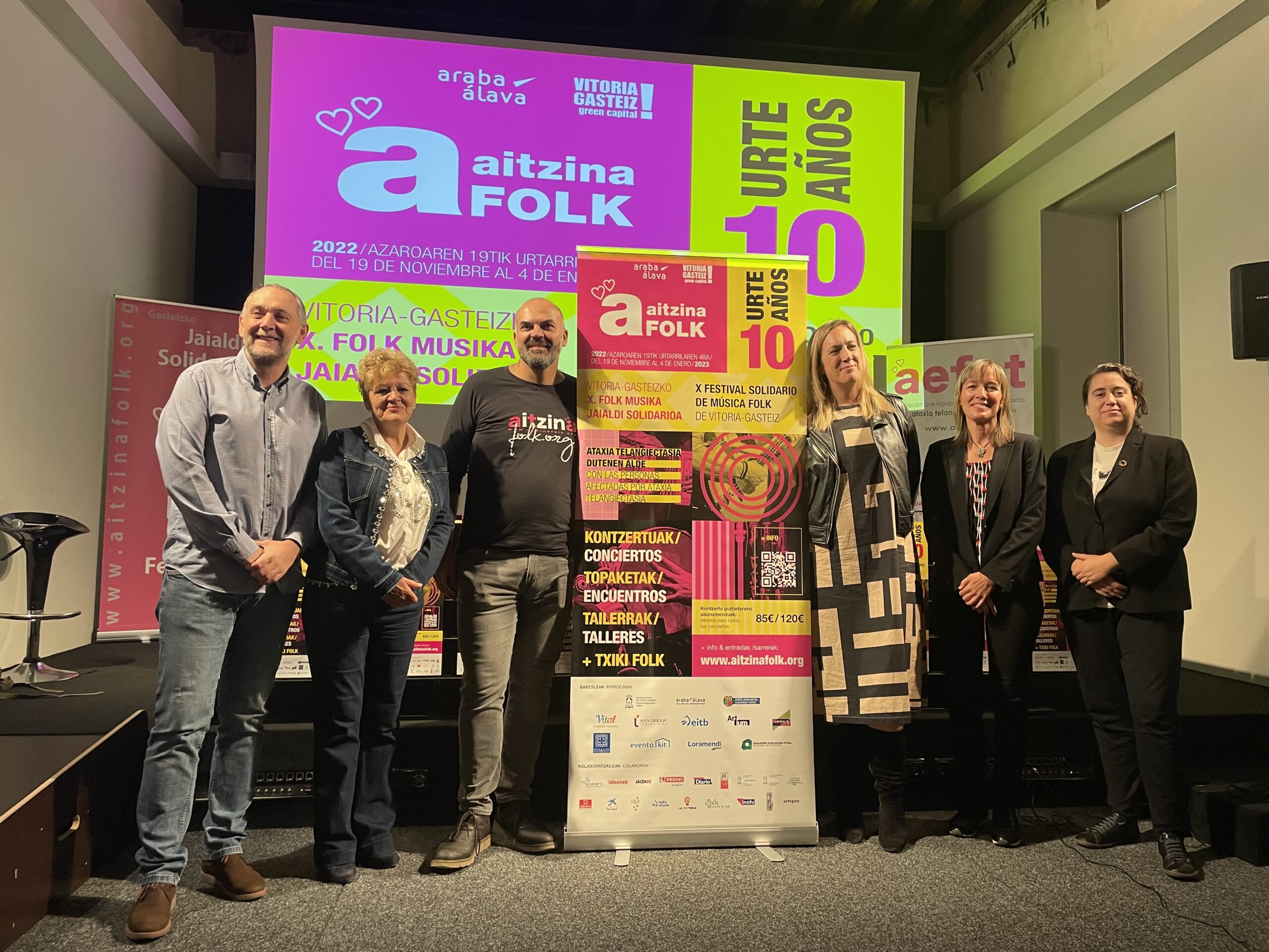 Azaroko eta abenduko asteburuetan eta urriaren 4ko azken kontzertu batekin ospatuko den Aitzina Folk jaialdi solidarioaren X. edizioa urriaren 15ean, larunbatean, 19:00etan aurkeztuko dute, Gasteizko Santa Maria Katedralean antolatutako kontzertu batean.