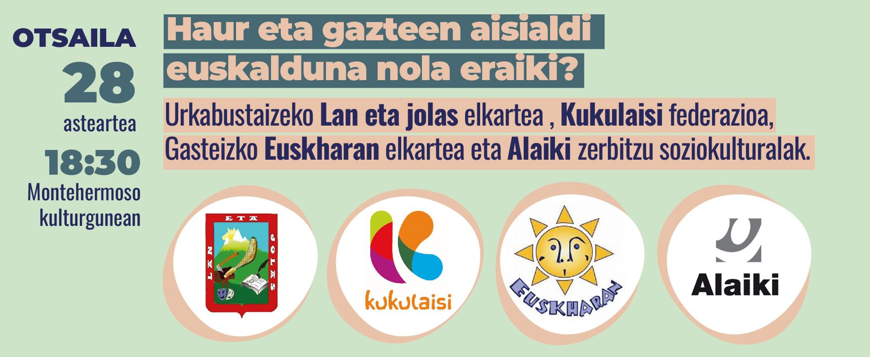 Haur eta gazteei zuzendutako aisialdi eskaintza ugaria da Gasteizen, askotan ordainpekoa eta gutxitan euskarazkoa, nahiz eta hartzaile gehienak euskaldunak izan. Zer eragile eta ikuspegi mota dago eskaintza bakoitzaren atzean? Zer helburu, balore eta antolakuntza darabilte? Zer urrats eman daiteke aisialdi, besteak beste, euskaldunerantz?