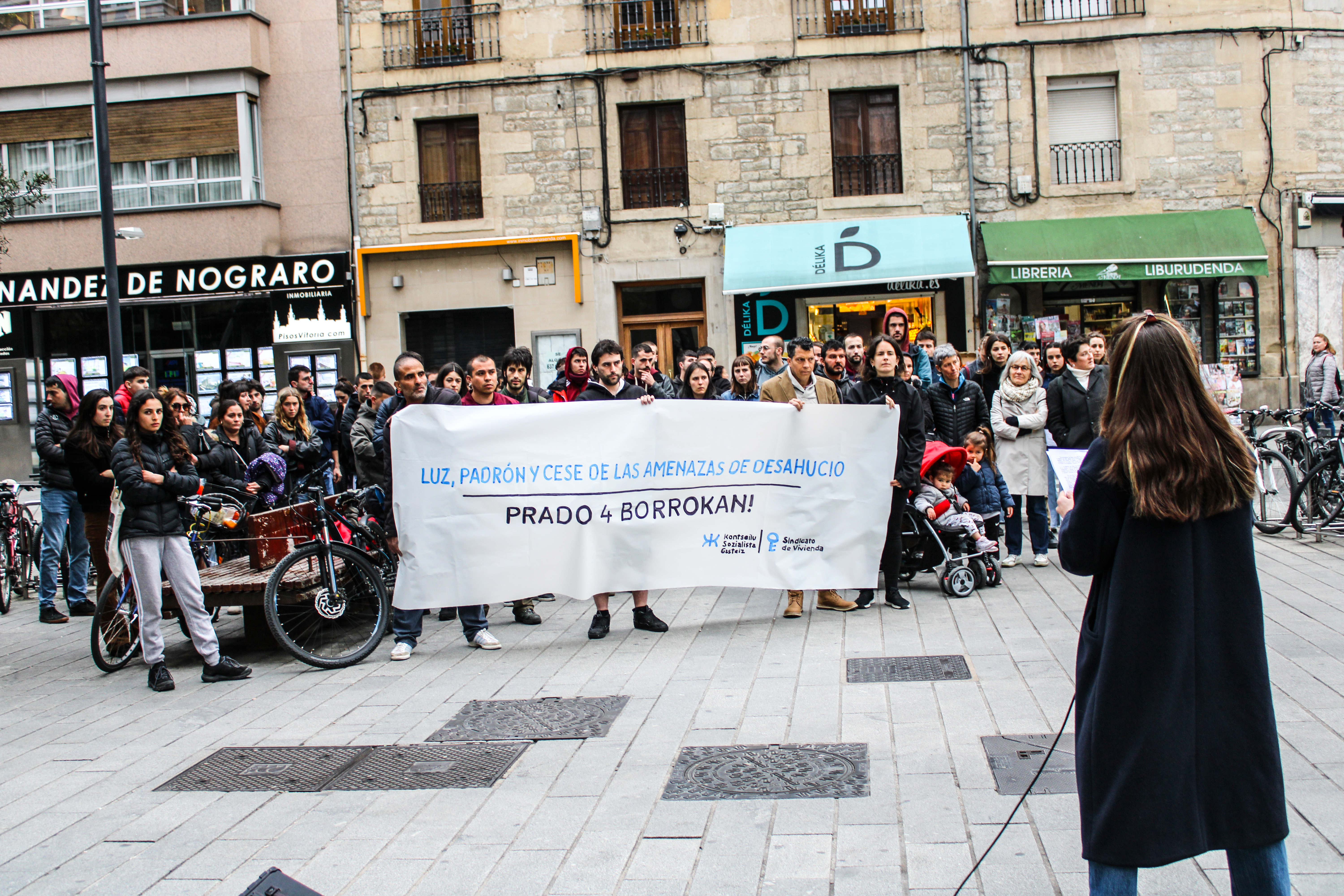 Horren aurrean, joan den ostiralean, elkarretaratzea egin zuten sindikatuak eta Prado kaleko 4. zenbakiko bizilagunek, "etxejabeen inpunitatea borrokatzeko eta instituzioen rol konplizea seinalatzeko".
