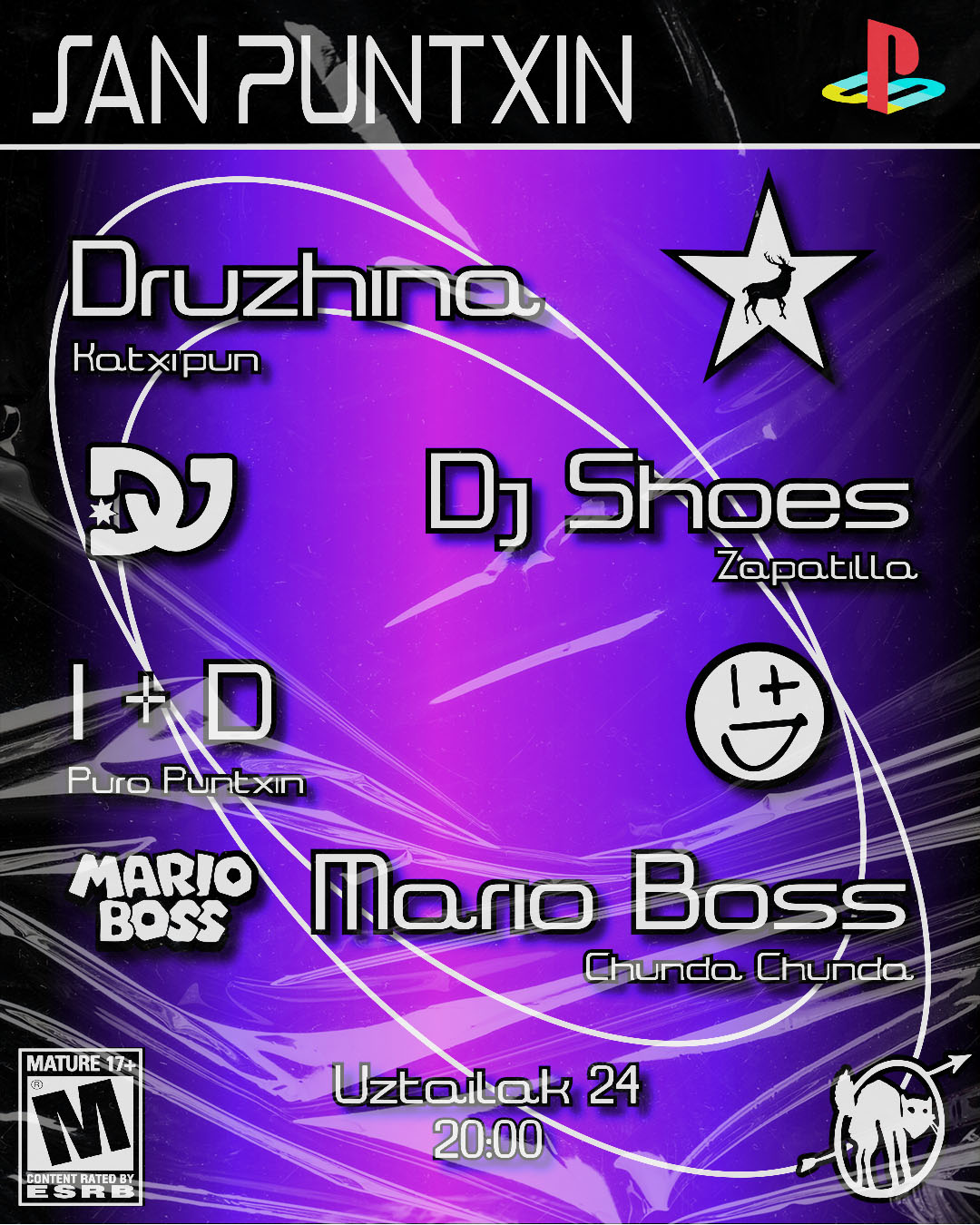 Jaien atarian, astelehen honetan, Santiago bezperan, uztailaren 24an, hainbat DJ izango dira Gasteizko Gaztetxean, San Puntxin jaialdian: 20:00etatik aurrera, Druzhina (katxipun), DJ Shoes (zapatilla), I+D (puntxin purua) eta Mario Boss (Txunda Txunda) arituko dira musika jartzen.