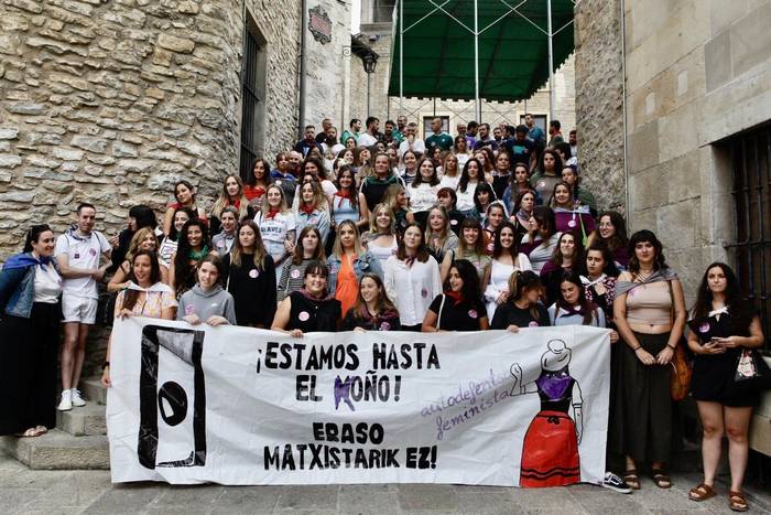 Blusen eta Nesken Batzordeko Berdintasun taldeak agerraldia egin du San Migeleko balkoian, eraso matxistarik gabeko jaiak aldarrikatzeko, eta horren aurrean erantzuteko protokoloa aurkezteko. "Protokolo hau da guztiontzat espazio seguruak izango diren jaietarantz aurrera egiteko dugun tresna", gogoratu dute.
