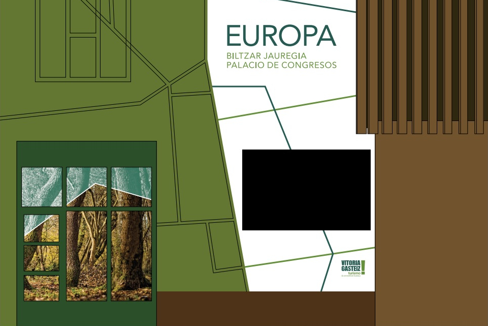 Gasteizko Udalak 3.5 metro zabaleran eta 2 metro altueran izango dituen pantaila bat jarri asmo du Europa Jauregian. Hainbat elementuz osatutako pantaila horrekin gaur egun kongresuei buruzko egutegia zehazten duen olana ordezkatu nahi dute.