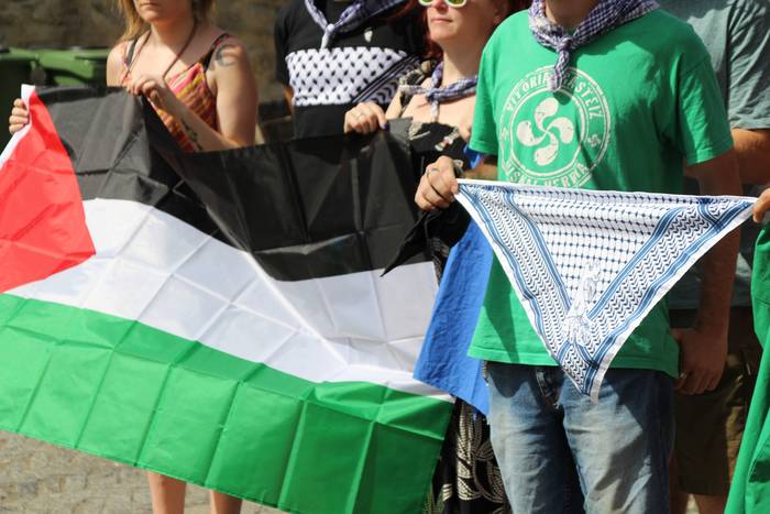 Gasteizko Neskak eta Blusak eta Gernika-Palestina herri ekimena batu egin dira "Palestinako herriaren aurkako genozidioa salatzeko" eta euren "elkartasuna adierazteko". Gatazkari ikusgaitasuna emateko, blusen eta nesken kuadrilla batzuek ekimenerako sortutako zapia banatu dute kideen artean, gaur Aihotz plazan egindako aurkezpenean, eta jaietan zehar salgai egongo da gune ezberdinetan, abuztuaren 3an hasita. Bildutako dirua herri palestinarraren beharrak asetzen laguntzeko erabiliko da, Gernika-Palestina elkartearen bidez.