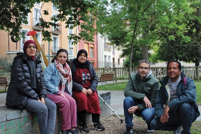Etxanobe parkean egin dugu hitzordua. Euskaraz eta gaztelaniaz jardun gara, baina gure buruetan ama-hizkuntza gehiago daude isilik: Aljeria eta Marokoko dariya, Siriako arabiera, katalana, baita ikasitako beste batzuk ere: frantsesa, ingelesa, italiera, portugesa...