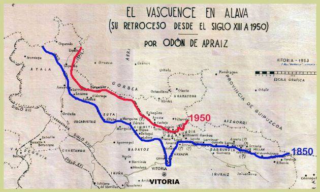 Urtez urte txikitzen joan ziren euskararen mugak, baina Gasteiztik oso hegoaldera ere ohikoa izan zen hizkuntza. Errioxa probintziari izena ematen dion Oja ibaiaren inguruan, Ezkaraitik harago ere, euskaraz hitz egiten zen XIII edo XIV. mendeetara arte, garaiko dokumentuek erakusten dutenez, eta toponimia euskalduna nonahi topa daiteke bertan. Ez da harritzekoa beraz Gasteiz euskalduna izatea, nahiz eta hurrengo mendeetan nabarmen gailenduko zen gaztelera.