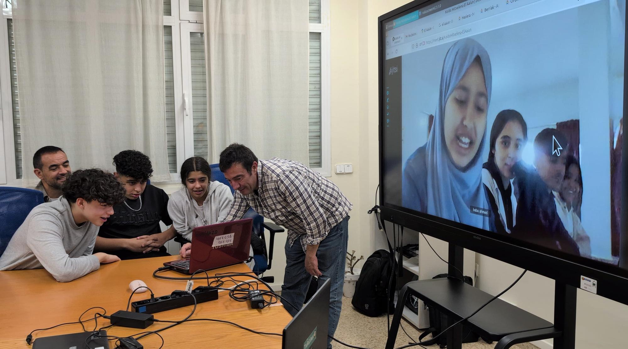 Ordenagailuak berritu eta software librean aritzeko esperientzia izateaz gain, ikasleek lehen eskutik ikusi ahal izan dute beren ahalegina nola gauzatu den Aaiunen, bideo dei baten bitartez. Dei hori, noski, berritutako ordenagailu batekin eta software librearekin egin dute. "Saharako ikasleekin bideo deia egin genuenean, esan ziguten haien ikasketak hobetu direla ordenagailu horiei esker", esan du Youcef Malfik. Hasiera batean, hiru urratseko komunikazioa egin zuten. Koldo Mitxelenatik euskaraz, handik gaztelerara, eta Saharan zegoen ikasle batek gaztelaniatik arabierara itzulpena egin zuen. "Baina Aimarrek eta biok arabiarrez pixka bat dakigunez, gero zuzenean euskaratik arabierara egin genuen", oroitu du Youcef Malfik.