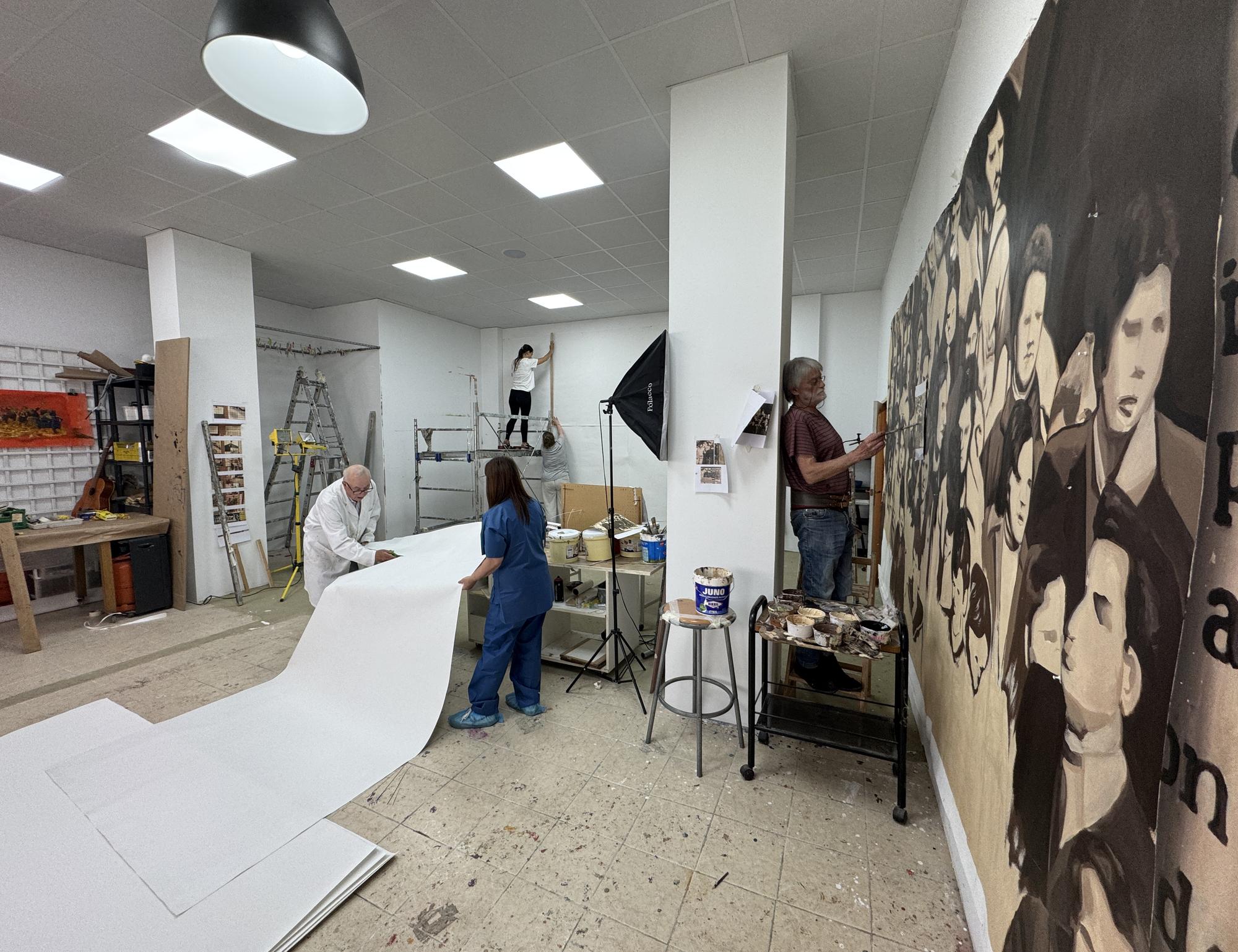 Nafarroako Errege-erreginen kaleko 28. zenbakian, oihalean jarri behar duten No hay presente ni futuro sin memoria / Egiaren mesede jarrai eta ekin horma irudiaren erreplika eta gaurkotzea margotzen hasi dira. 180 metro karratuko azalera izango duen oihalaren gainean hasi dira pintatzen, Veronica Werckmeister artistak Zaramagan duen tailerrean.