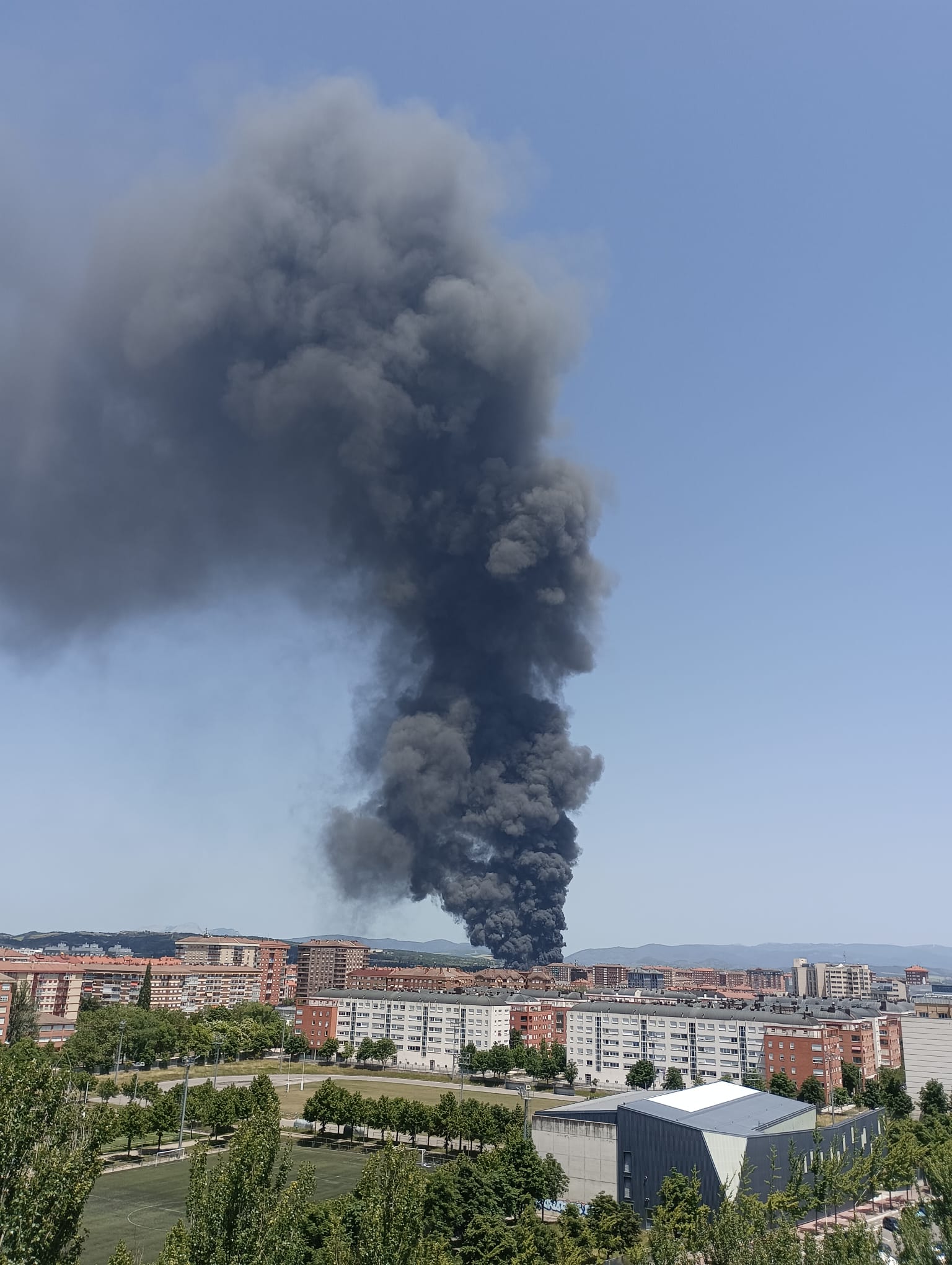Gasteizko LEAren lantegiak su hartu du, eta sugar handiak ikus daitezke fabrikako teilatutik irteten. Lascaray zonaldean dago fabrika, Arriagako Atea, Artapadura eta Zadorra hiribidearen artean, eta ke zutabe erraldoia ikus daiteke.