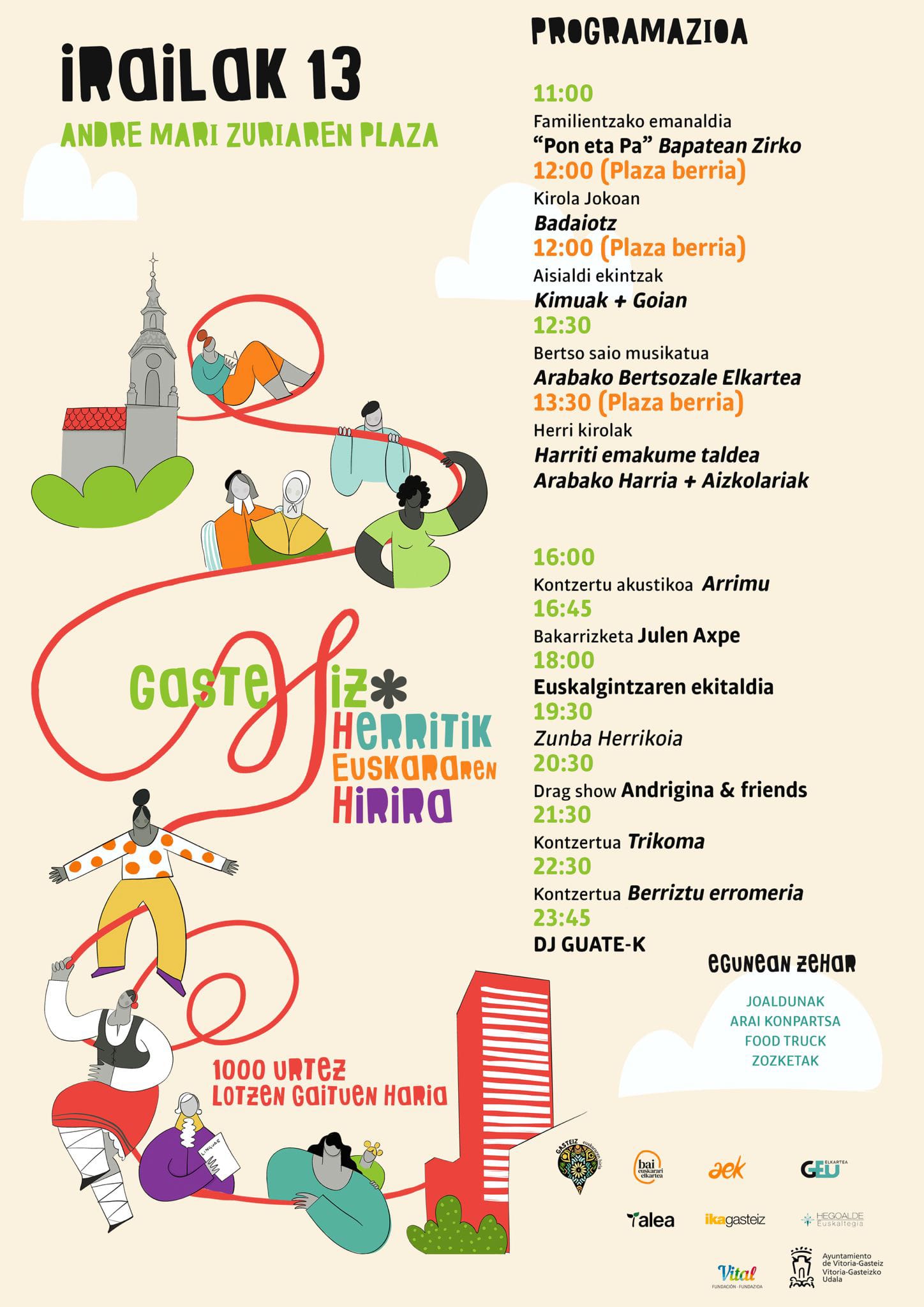 Andre Maria Zuriaren plazan eta Plaza Berrian izango diren jarduerak 11:00etan hasiko dira, eta gaueko ordu txikietara luzatuko da.