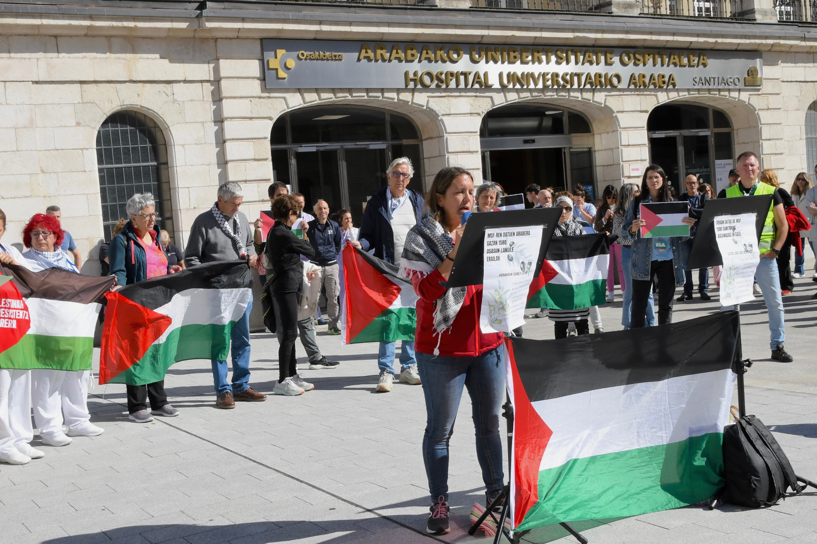 Palestinako herriak, bereziki Gazako Zerrendan, bizi duen egoera larria salatu du Sanitarioak Palestinarekin plataformak. Gasteizko Txagorritxu eta Santiago ospitaleen aurrean elkarretaratze bana egin dute aste honetan, eta hildako osasun langileen izenen irakurketa kolektiboa egin dute osasun arloko langileek.