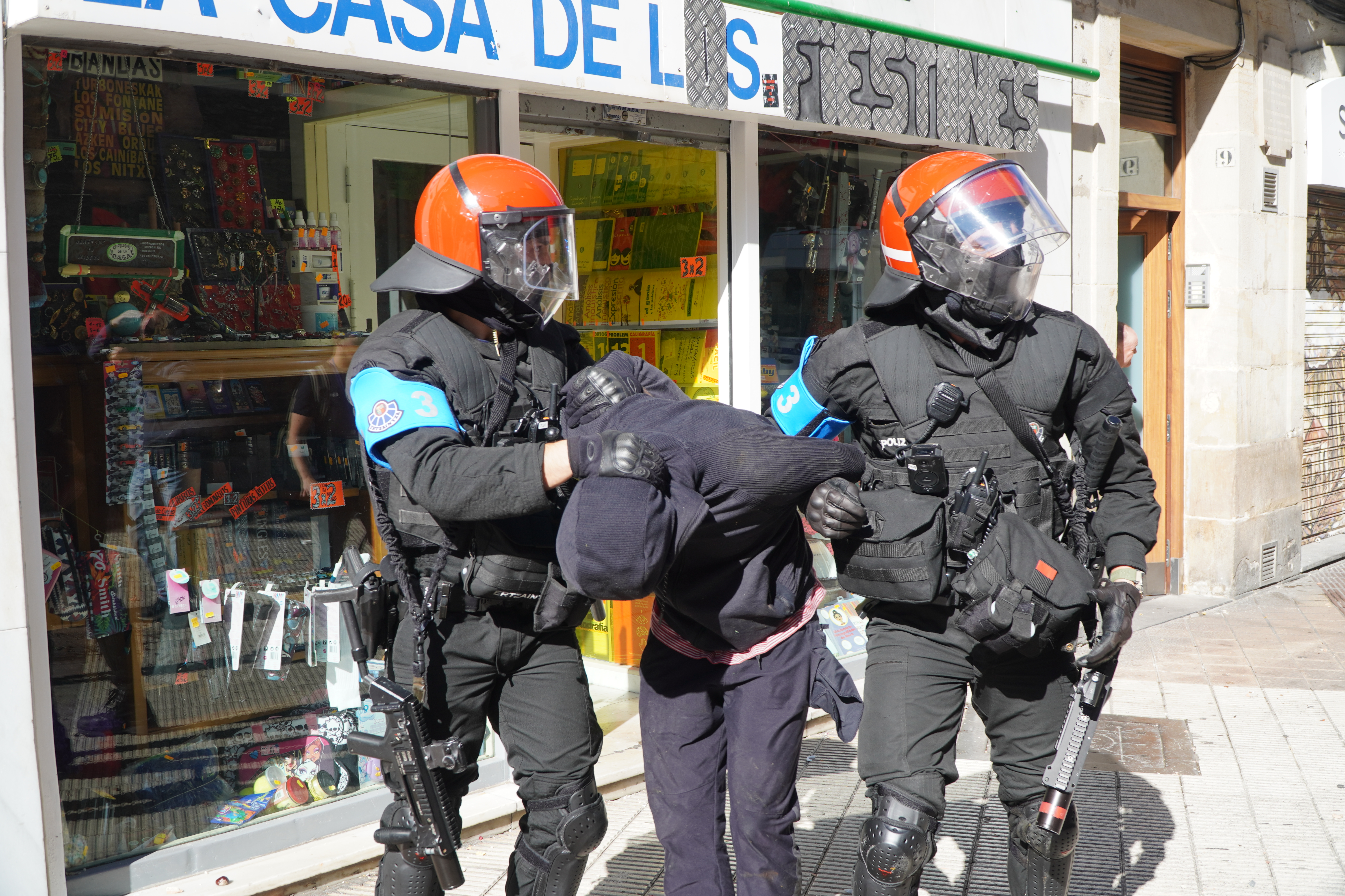Hemeretzi lagun atxilotu zituen Ertzaintzak atzo, Falangearen bisitaren aurka antolatutako ekintzetan. Adin txikiko pertsona bat atxilotu eta gutxira utzi zuten aske, eta gainerakoak igandetik astelehenerako gauean askatu dituzte. Desordena publikoaren delituak leporatu dizkiete.