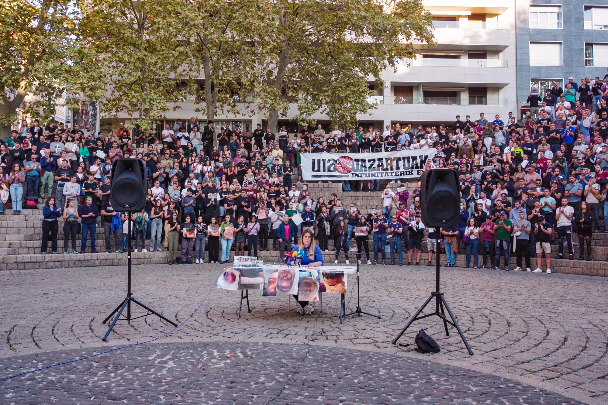 Salatu dutenez, eta hainbat bideotan ikus daitekeen bezala, Ertzaintzak "behin baino gehiagotan jardun zuen talde faxistekin batera, mobilizazioari boikota egiten saiatu zirenen aurka". Poliziari leporatu diote ez jardun izana liskarra eragozteko asmoz, ez herritarren segurtasuna babesteko, "baizik eta ahalik eta kalte handiena eragiteko".