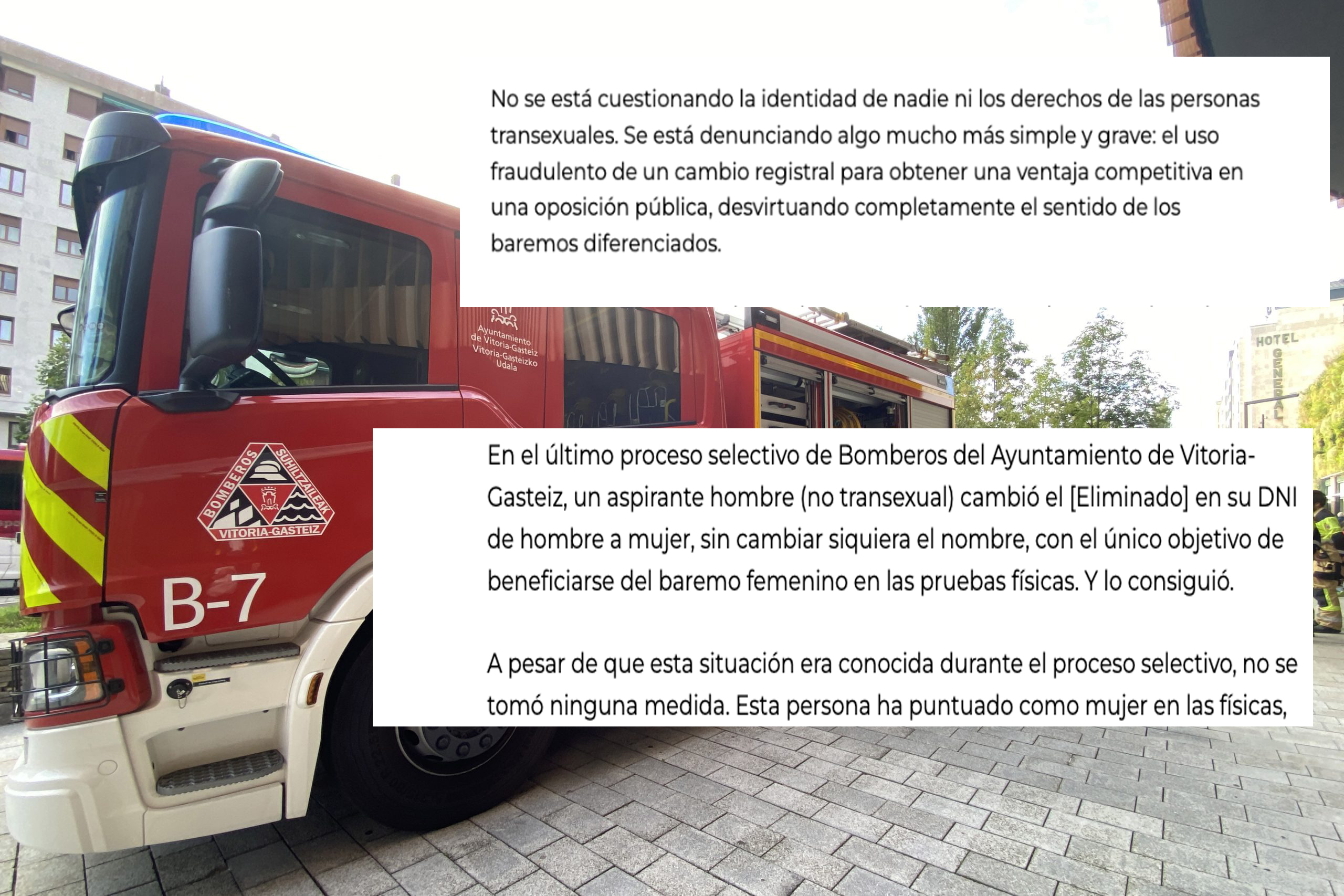 Oposiziogile batek nortasun agirian generoa aldatu zuen Gasteizko suhiltzaileen oposizioetan emakumeentzako kupoan sartzeko, eta horri esker plaza lortu du. Hori da, hain zuzen ere, oposiziogile talde batek dioena, eta salatu dute pertsona horrek berdintasun araudien eta Trans Legearen (4/2023) "iruzurrezko erabilera" egin duela.