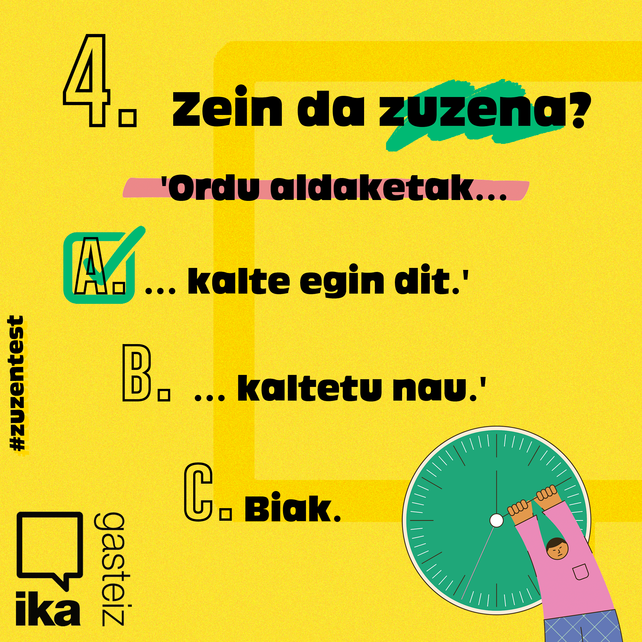 'Kaltea eragin' adierazteko, berriz, KALTE EGIN erabili behar dugu, 'du' laguntzailearekin. Horrek kalte egiten dio gorputzari.