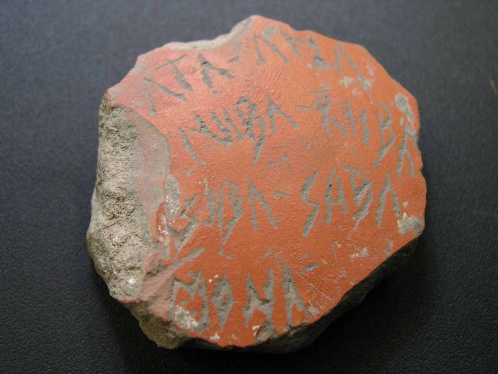 Orain dela 14 urte azaldu ziren hitzok, ez pdf formatuan, ezta paper euskarrian ere. Terra sigilata gorrian, ontzi zati txiki batean zizelkatuta daude.