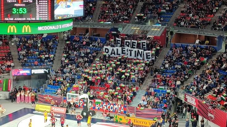 BDZ Araba taldetik gure gogoeta partekatu nahi dugu Gasteizko gizartearekin, iragan otsailaren 1ean, Baskoniaren pabiloian, Maccabi saskibaloi talde israeldarrari egin zitzaion harreraren inguruan. Lehenik eta behin, ospatu behar dugu, harrotasunez, Israelgo erregimen genozidaren zurikeria ekitaldi bat izan behar zuenari buelta eman eta Palestinaren aldeko aldarrikapen orokor eta entzutetsua bilakatu izana. Gauzak horrela, gure eskerrik beroena helarazi nahi diegu Baskoniako zaletuei, eta bereziki Indar Baskonia taldeko kideei, ordezkaritza israeldarraren normaltasuna urratu eta erregimen sionistaren genozidioarekiko konplizitatea aurpegiratu eta salatu zutelako.
