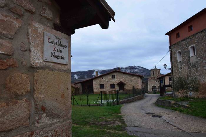 «Udalaren borondatearen isla dira adierazpen elebidun horiek guztiak», esan du Beñat Goitiak. Trebiñuko eta Argantzungo udaletako euskara teknikaria da. Bi egun egiten ditu udal batean, beste bi bestean. «Testuetako izartxoa» da, beste askoren moduan, Arabako Foru Aldundiaren esku baitago haren soldata. «Kale izenak euskaraz ere jartzea tontakeria bat dela uste dezake batek. Baina, hemen, garrantzitsua da. Eta hori lortzeko, denbora askoan borrokatu behar izan dute batzuek».