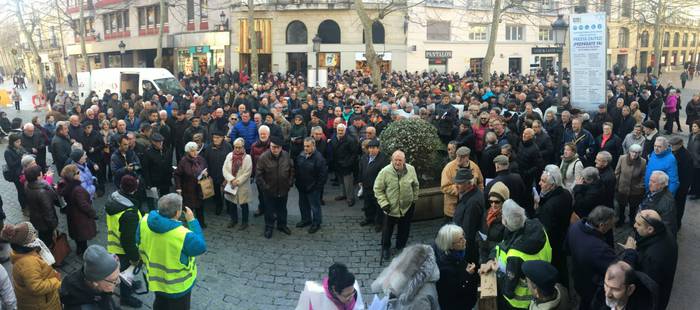 Mariano Rajoyk finkatutako urteroko %0,25eko igoeraren aurka protesta egin dute Gasteizko Correos plazan, Arabako Pentsionistak Lanean deituta. Igoera honek erosmen ahalmena murrizten diela salatu dute elkarretaratzean.