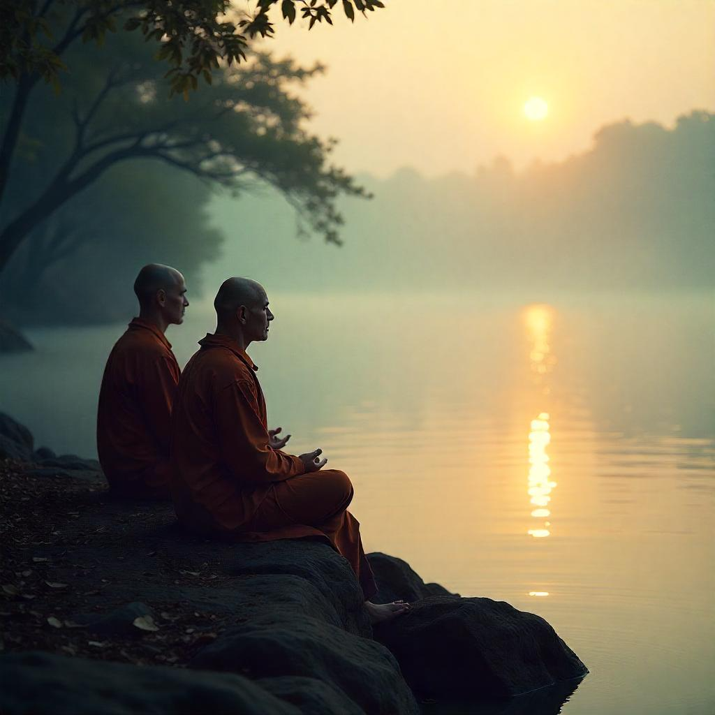 Bi monje budista, Maiten eta Lobsang, mendiko tenplu bateko lorategian paseatzen ari ziren, goizeko haize leunaren artean. Zuhaitzen hostoak isil-isilik mugitzen ziren, eta ur-jauzi txiki batek musika lasai bat sortzen zuen.