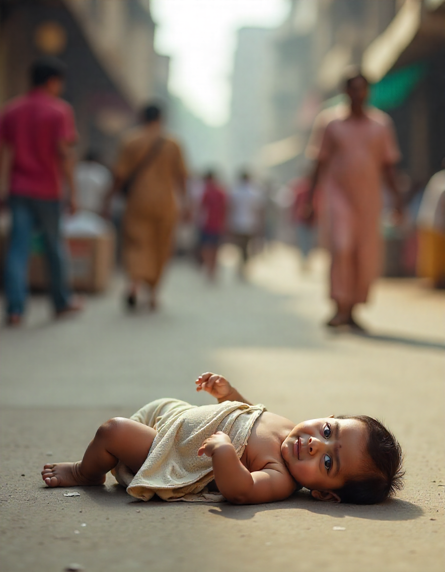 Duela urte batzuk, ezagun bat Indian izan zen bidaian eta kalean abandonatutako haurtxo bat aurkitu zuen. Pena eman zion, baina toki berean utzi zuen, nahiz eta jakin, ziurrenik, handik gutxira hil egingo zela. Esan zigun pentsatzen zuela ez zegoela bere herrian eta ez zela bere arazoa. Gero, lasai jarraitu zuen bidaia.